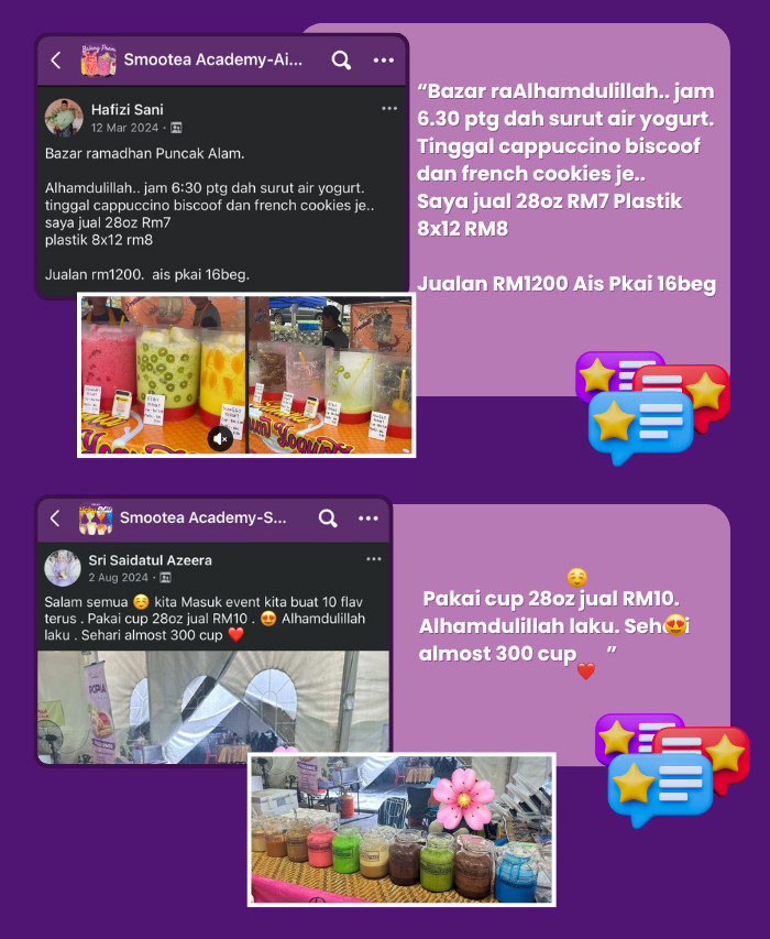 Nilai harga yuran untuk semua ilmu praktikal yang anda akan dapat & boleh terus belajar, “tiru” dan buat untuk mulakan Bisnes Air Teh & Coklat ni adalah berjumlah tak kurang dari RM2000, malah mungkin lebih tinggi lagi.