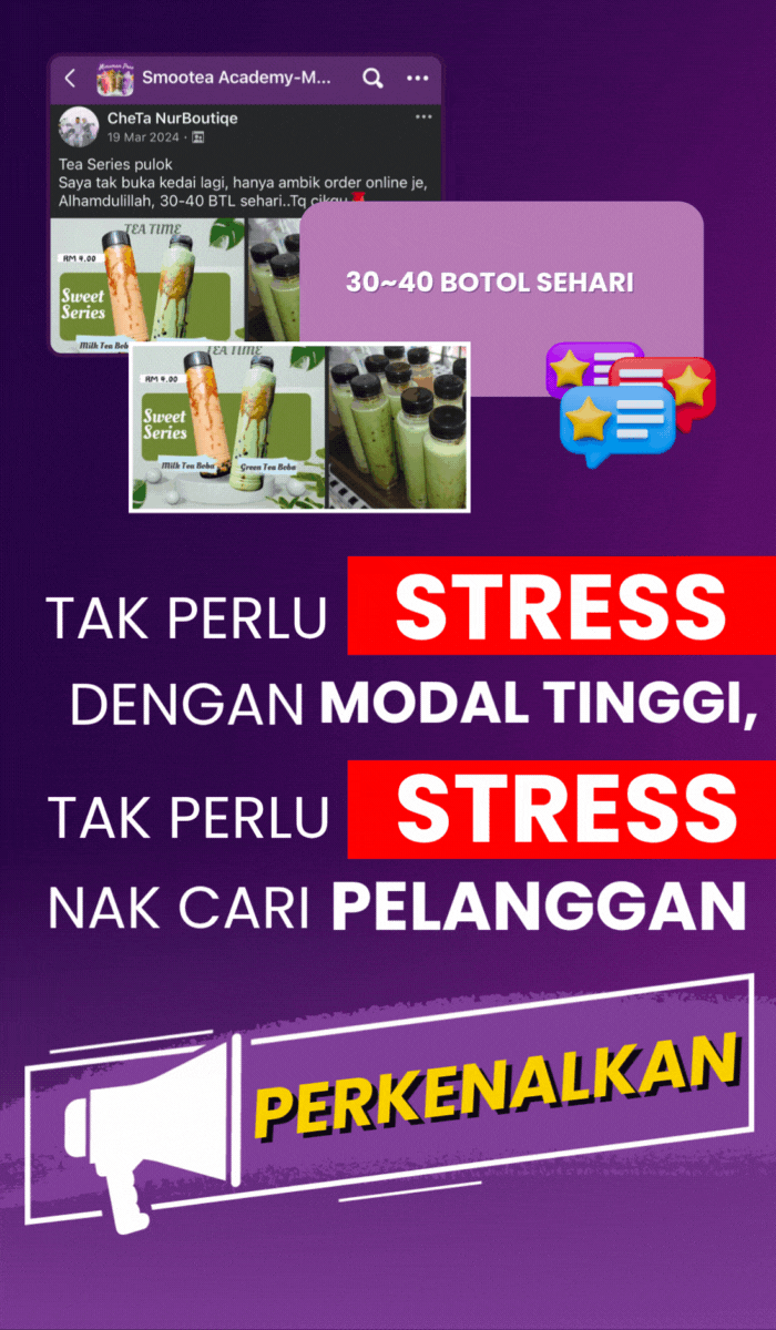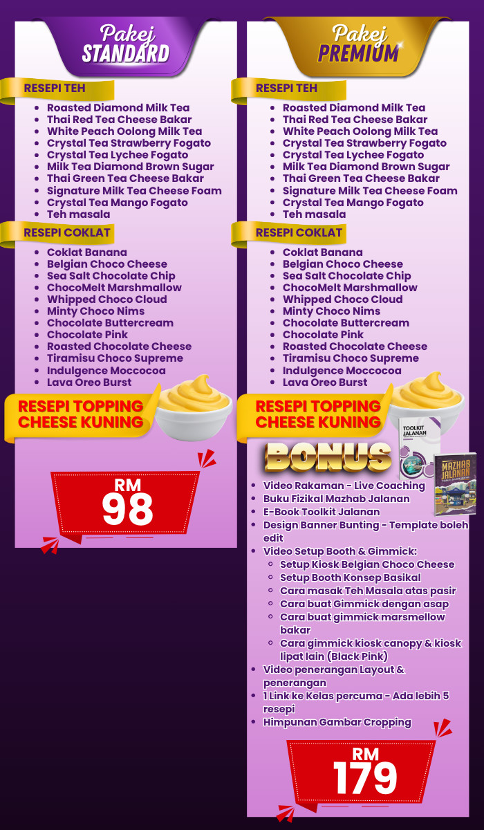 Jadi untuk anda yang SERIUS nak belajar selok belok A-to-Z cara memulakan Bisnes Air Teh & Coklat ni, anda hanya perlu labur Yuran Kepandaian hanya…